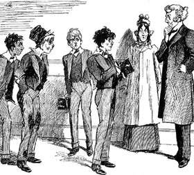 | Miss Primrose gives lessons in deportment to Greyfriars Boys. |