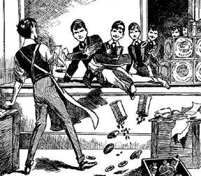| Fishy buys up Mrs Mimble's stock to sell it at double prices but the Remove soon put a stop to his game. |