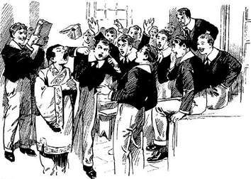 Jimmy Silver, Lovell, Raby, Newcombe, Mr. Railton,